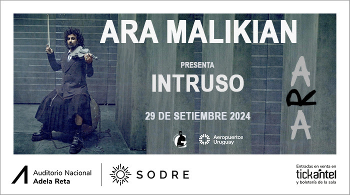 Ara Malikian, el virtuoso violinista de origen libanés y ascendencia armenia, llegará nuevamente a Uruguay con su espectáculo “Intruso”. El músico continúa su gira mundial y en setiembre será la oportunidad de disfrutar en vivo y en directo de su fascinante técnica y de su particular estilo que lo ha llevado a recorrer el mundo con su amplio y variado repertorio.