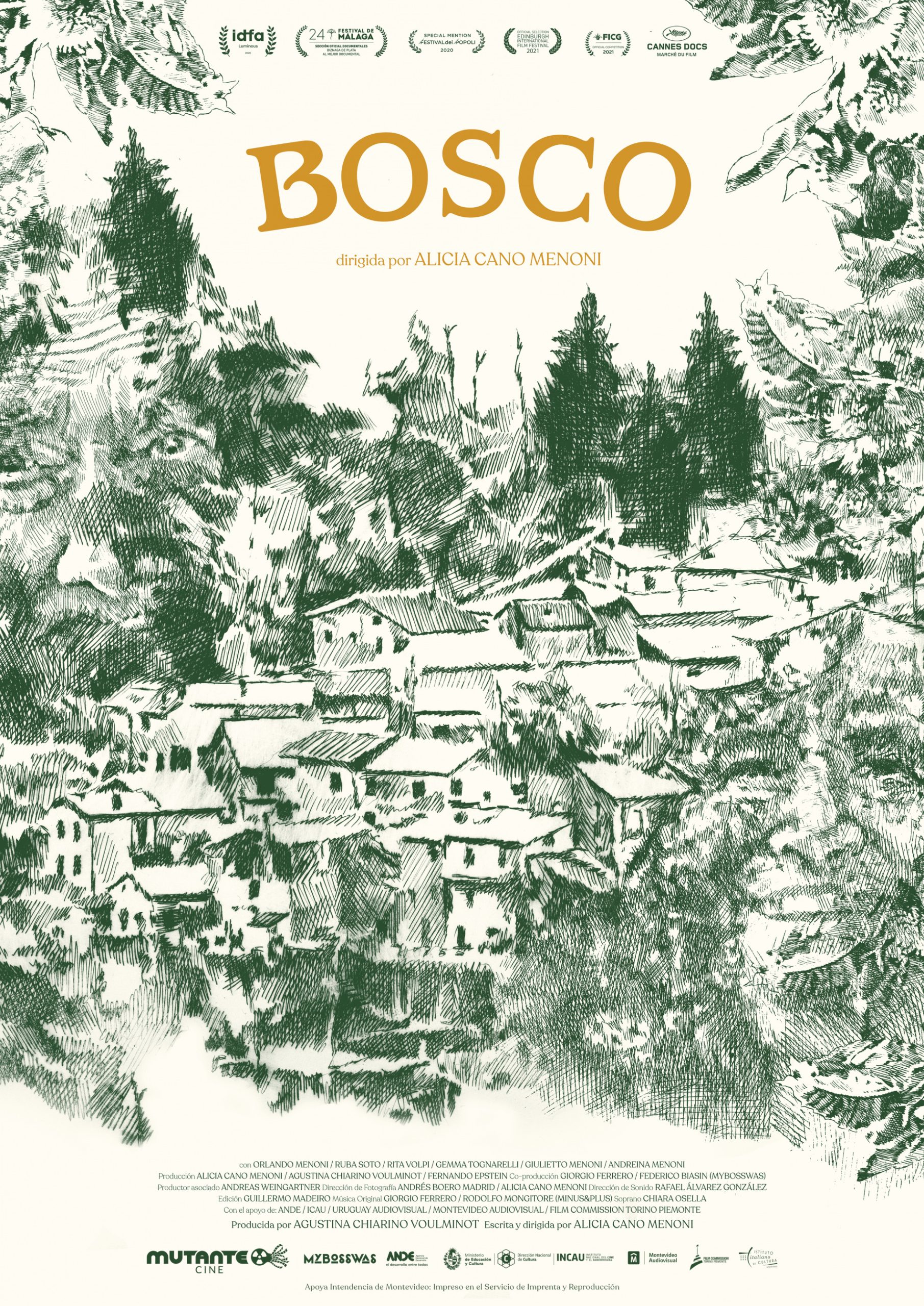 Bosco es un pueblo de 13 habitantes que de a poco va regresando a su origen de bosque. A un océano de distancia Orlando, con 103 años, sentado en una silla giratoria, nos empuja a un viaje que deviene en fábula sobre la memoria de esos paisajes que existen más allá del tiempo y la realidad. Filmada a lo largo de 13 años, esta película indaga sobre lo que queda cuando todo parece destinado a desaparecer.