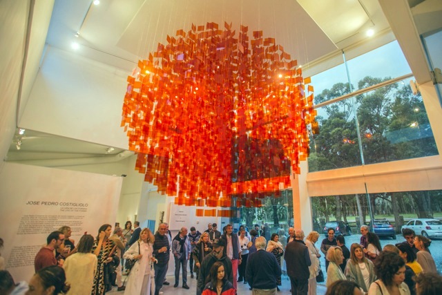 En la inauguración de SPHÈRE ORANGE junto a Julio Le Parc estuvieron presentes el ex presidente del Uruguay Julio María Sanguinetti el destacado crítico y curador Ángel Kalenberg, quien dirigió durante 37 años el Museo Nacional de Artes Visuales de Montevideo y el escultor uruguayo Pablo Atchugarry.