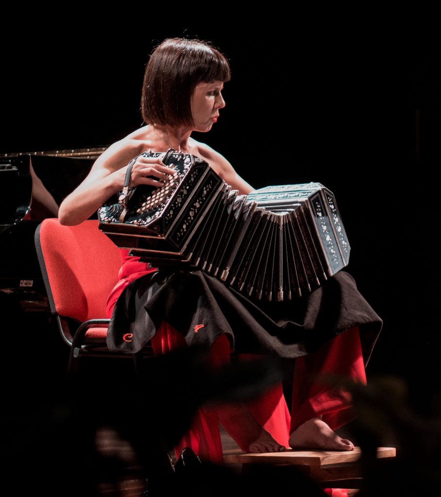 Carla Algeri. Bandoneonista, compositora, directora y arregladora. El tango es su Lengua Madre como ella misma lo define. Nacida en Buenos Aires y del Municipio de Almirante Brown, ciudad de la Artes. Transitó el camino del tango de la mano de un grande del género, el Maestro Don Osvaldo Pugliese. Estudió en la Universidad de La Plata. Discípula directa del Maestro Rodolfo Mederos. Estudió orquestación con el Maestro Gabriel Senanes y se formó en la Escuela Integral de Música. Su personalidad única queda expresada a través de su música con una interpretación exquisita y auténtica, que lleva a quien la escucha a sumergirse en sus raíces más profundas y colmarse de emoción. El tango, en Carla Algeri, vibra con una sensibilidad inconfundible. Estas características la hicieron una pionera en la ejecución del bandoneón en todas su formas como músico y luego, como gestora cultural, la impulsaron a la redacción del Tango Patrimonio de la Humanidad para la Unesco a través del Ministerio de Cultura del Gobierno de la Ciudad de Buenos Aires. Su actividad se desarrolla entre la docencia del bandoneón y la música patrimonial en diferentes universidades, transmitiendo el lenguaje del tango. La composición y el bandoneón la dejan ver como una exquisita intérprete. Allí está al frente de sus diferentes formaciones: dúo, trío, quinteto, orquesta típica y solista de orquesta, de cuerdas y sinfónica. Todo esto sin dejar de lado las actividades para la preservación del Instrumento y del género. En la actualidad es directora del Centro Cultural Polo Bandoneón, espacio dedicado a la preservación del bandoneón y del Lenguaje del tango, además de realizar conciertos en diferentes ciudades del mundo junto a destacados Maestros. Embajadora Cultural del tango de la Ciudad de Buenos Aires 2009, y de su municipio natal 2012 Personalidad destacada de la Cultura por la Legislatura de la Ciudad Autónoma de Buenos Aires.2016 Recibió la orden del Buzón por el Museo Mano Blanca. 2015. Recibió La Llave de la Ciudad de Miami por la Alcaldía de la Ciudad. 2017. Miembro de Honor de la International Art Council – United Nation of Arts de Buenos Aires – UNESCO. 2018.