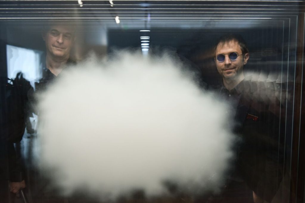 Nube 2018. Dan Cameron y Leandro-Erlich. Foto Guyot. Malba 2019.