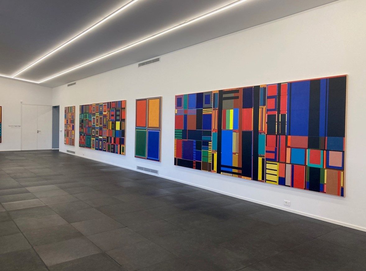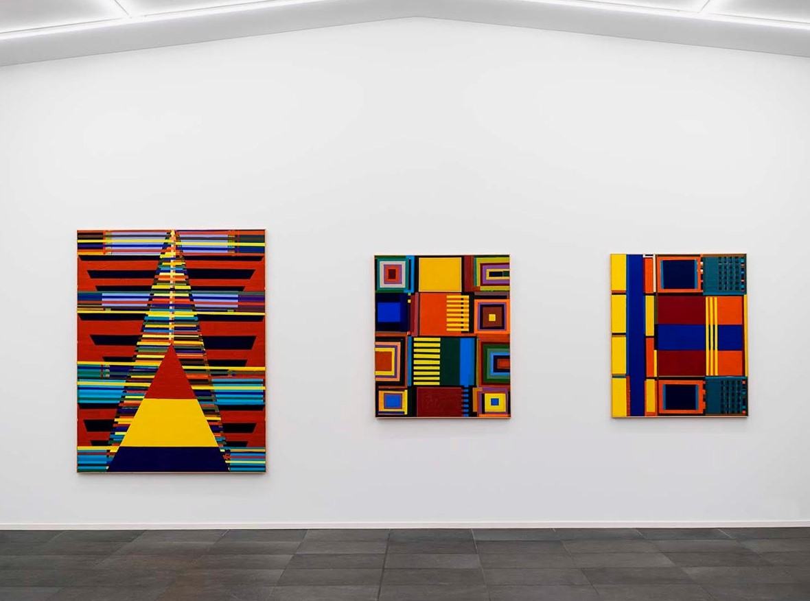 Pintar genera encuentros entre capas, planos, colores, texturas y también la propia historia del cuadro conmigo mismo, que va configurando su propio cuerpo, simbiótica y autónomamente. Este cuerpo convive con los errores, lo incierto, lo torcido, lo manchado, lo chorreado y se construyen y se derriban en simultáneo. Una forma cuadrilátera, donde se expande la pintura para encontrar espacios, contingencias, superposiciones, desvaríos que no tienen nada de geométrico. El acto de pintar se apega a la pintura, al bastidor, a lo rectangular, a sus ortogonales. Se produce una simbiosis entre la forma del bastidor que genera patrones de formas y el color que encaja de manera irrestricta, un color Pharmakon, sin leyes, otorgando al cuerpo incipiente de la pintura un oxígeno para su propia consolidación como objeto, como cuerpo. Una relación de eucariotas y procariotas, un simbionte, un huésped.