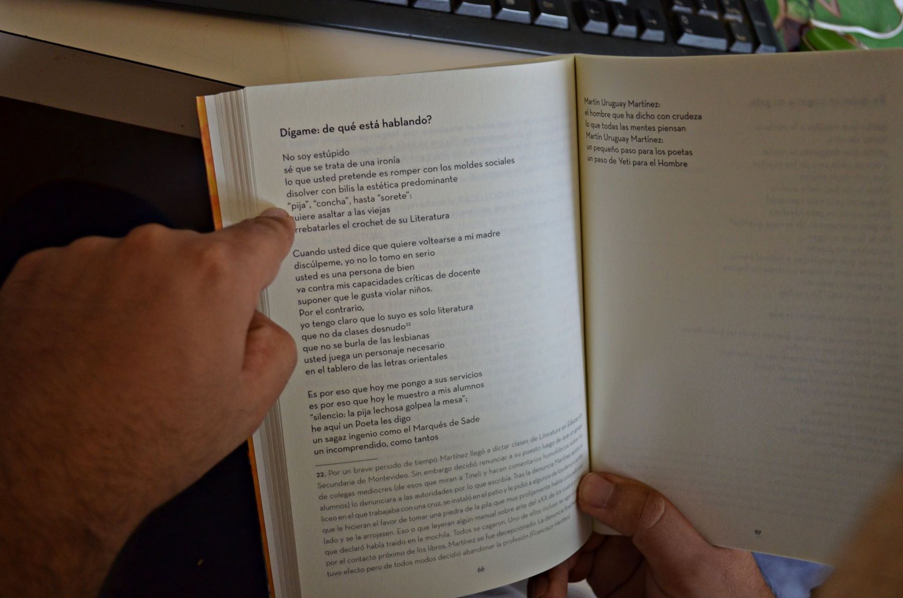Nací en Montevideo en 1988, pero vivo en Toledo, Canelones desde hace años. Soy Docente en Literatura, estudiante de Filosofía, escritor y músico. He editado tres libros: Poemas de Amor (2010), Hacia Ítaca (2011) y Poemas de la Pija (2015; bajo el heterónimo Martín Uruguay Martínez).