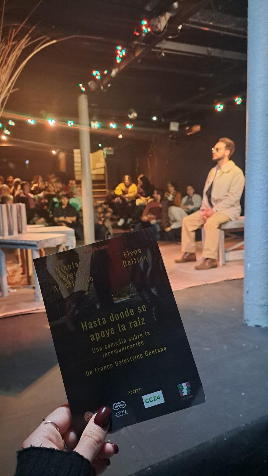Si sos de acortar la semana con una salida. Los miércoles de noviembre pueden ser una buena excusa para arrimarte al Teatro Stella. A las 20:30 horas comienza “Hasta donde se apoye la raíz” una comedia dirigida por Franco Balestrino Centeno, e interpretada por Nicolás Pereyra Aristimuño y Elena Delfino,  dos actores que defienden con el cuerpo, el alma y un brillo inigualable de felicidad en la mirada, un guión lleno de dulzura e intensidad.
