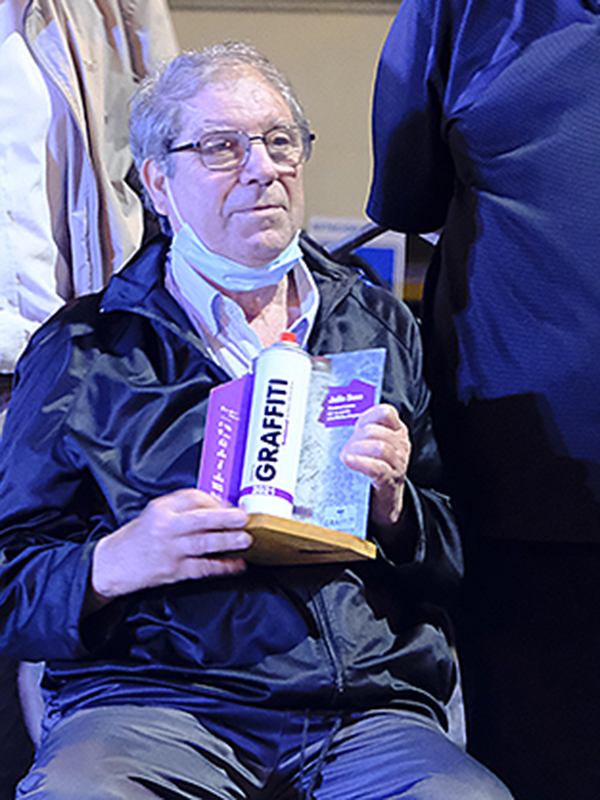 Comenzando con las actividades por las 20 ediciones de los Premios que se cumplen en el 2022, se le entregó al presidente de la Fundación Julio Sosa, Freddy González, el Premio Graffiti en Reconocimiento por su aporte a la Música Uruguaya a Julio Sosa, el primero entregado post mortem, para que forme parte del acervo del Museo Julio Sosa que se encuentra dentro del Hipódromo de Las Piedras.