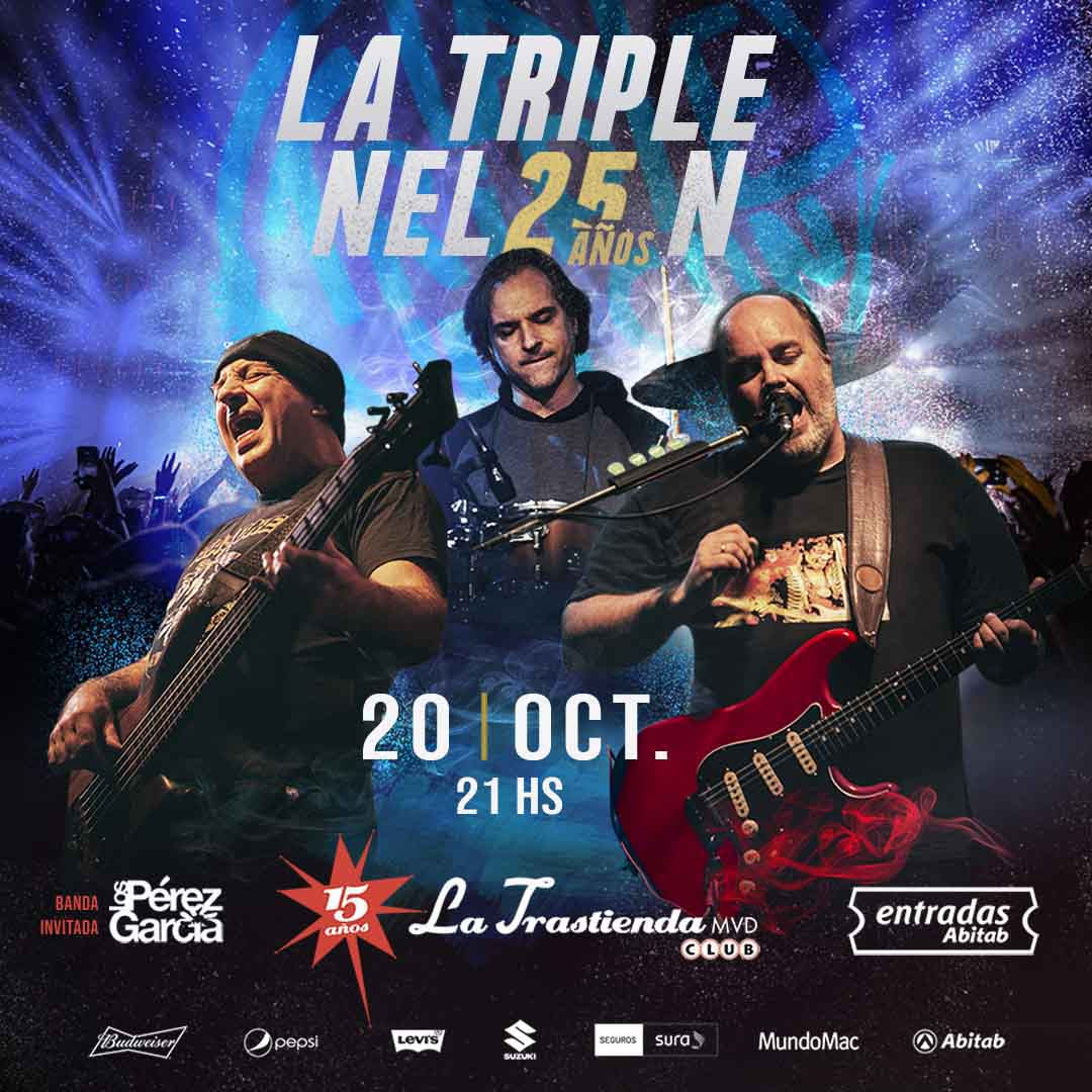 EL PRÓXIMO VIERNES 20 DE OCTUBRE LA TRIPLE NELSON VUELVE A LA TRASTIENDA MVD PARA FESTEJAR LOS 25 AÑOS ININTERRUMPIDOS DE LA BANDA, DONDE TOCARÁN CANCIONES DE TODOS SUS DISCOS INCLUYENDO TEMAS DE DESPUÉS DEL ÚLTIMO DÍA SU ÚLTIMO ÁLBUM QUE CUENTA CON 7 NOMINACIONES EN LOS PREMIOS GRAFFITI 2023.