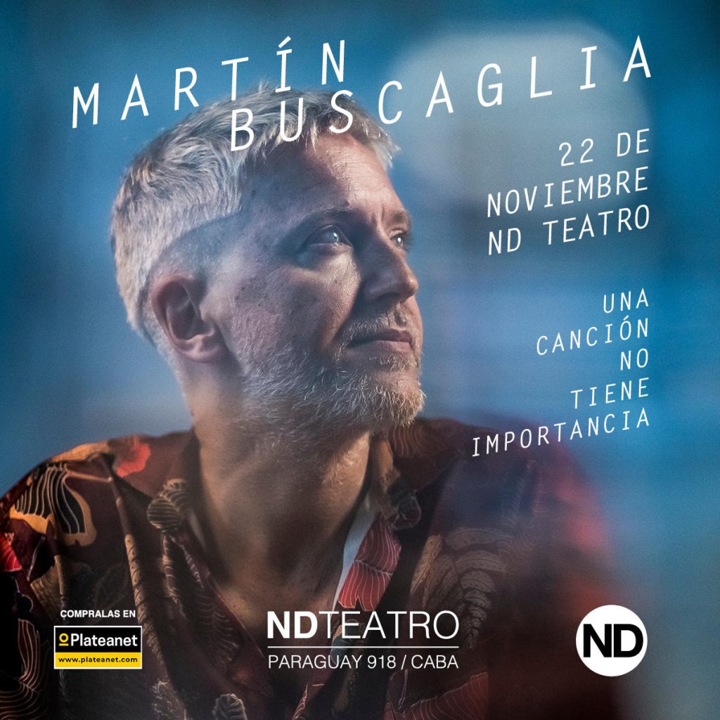 Martín Buscaglia, uno de los artistas más destacados e influyentes de Uruguay, despide el 2024 con “Una canción no tiene importancia”, un concierto que promete ser inolvidable. Luego de su gira europea y tras agotar el Teatro Solís de Montevideo, vuelve al ND Teatro de Buenos Aires después de mucho tiempo junto a músicos invitados para presentar canciones nuevas y otras clásicas que no pueden faltar. Un show muy esperado para cerrar un gran año de Buscaglia, quien Fernando Cabrera definió como “el músico más importante en este momento de nuestra historia musical” y Jaime Roos describió como “una bola de swing”.