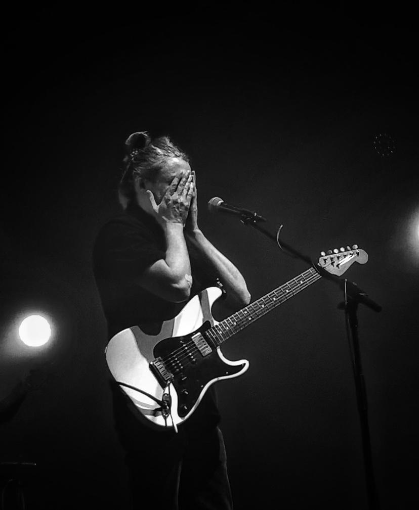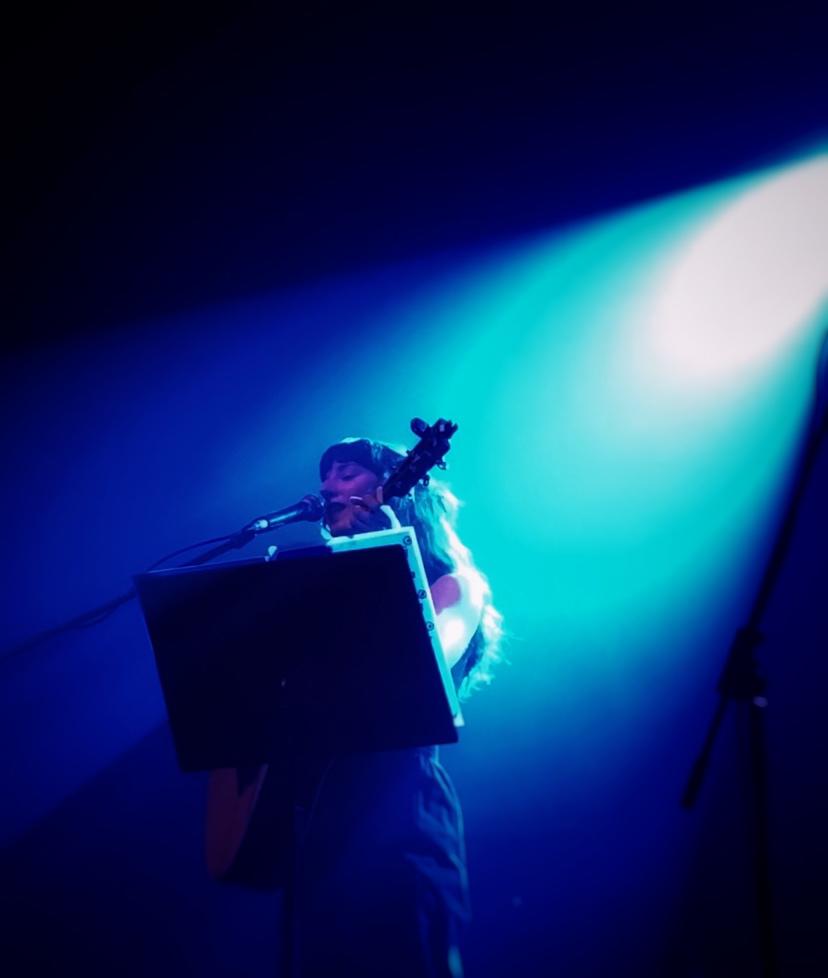 Vuelvo a ese momento y vuelvo a la timidez, pero no a la de Mica, sino a la que da nombre al fenómeno botánico que hace que las copas de los árboles no se choquen entre sí. Timidez que hace que estén milimétricamente cerca pero que no se toquen lo suficiente. ¿Porque hablo de esto para contar sobre Chapital en concierto? ¿Si Chapital no es tímido? Porque este fenómeno hace que los árboles formen paisajes, caminos, como lo hace el Chapa con sus canciones, con la diferencia de que ellos nada saben de deseo, de mirarse a los ojos, de conectarse, de permitir que la cercanía del otro irrumpa. Como una continuación de esa presentación de músicos comienza a sonar Bushido y los paisajes comienzan a aparecer, los musicales, y los imaginarios, de barcos que traen vinilos por ejemplo, ya que este tema forma parte de Móvil, disco que se encuentra en este formato y está próximo a llegar gracias al apoyo de Perro Andaluz.