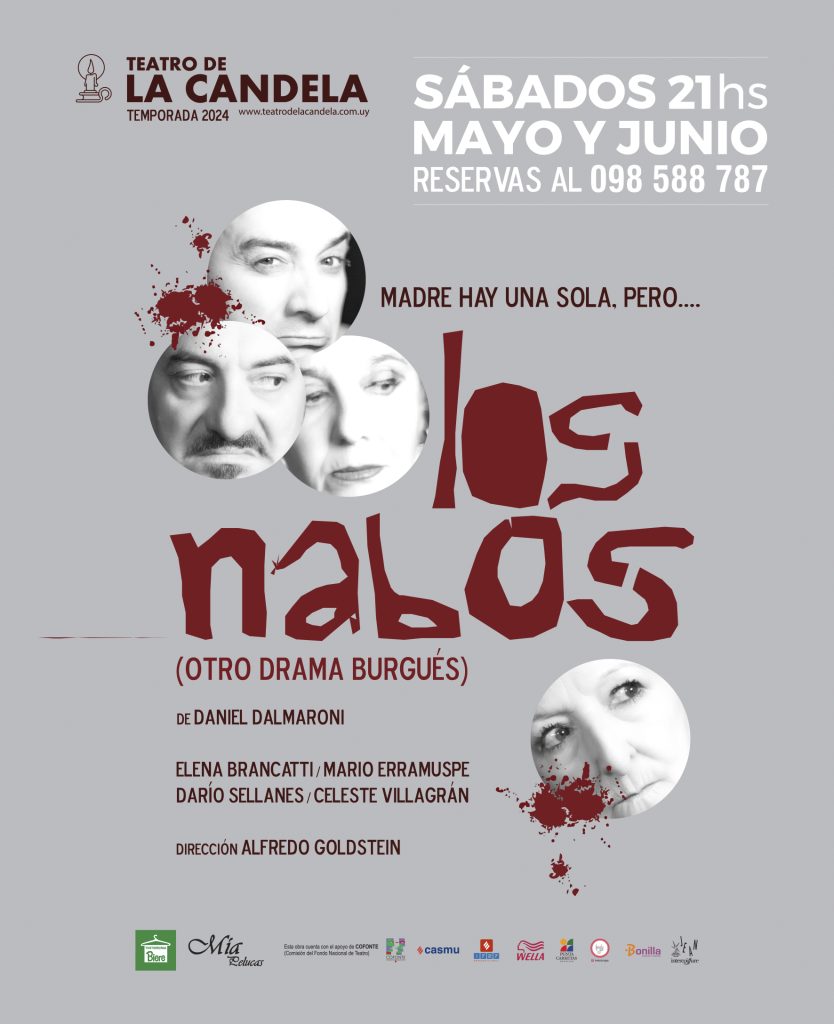 Alfredo Goldstein: “LOS NABOS” (Otro drama burgués) Es una reflexión corrosiva sobre nuestra relación con los viejos. Nuestro vínculo con los aspectos más complicados de la vejez. Una madre y sus tres hijos. Una madre de más de ochenta años y tres hijos que rondan los cincuenta en una situación límite. ¿Qué hacer para poder lograr que sus vidas puedan tener un respiro ante las demandas permanentes y sin pausas de esta madre dominante y de apariencia tierna y dulce? ¿Qué hacemos nosotros con nuestros mayores, cuando somos sumamente dependientes de ellos y cuando nos marcaron a fuego en nuestras vidas? ¿Qué fue de nuestra juventud y qué será de nuestro futuro con y sin esa madre que parece y no parece cruel? Dalmaroni construye esa relación con un humor feroz, con un tinte policial, porque estos tres hijos parecen estar dispuestos a todo para liberarse del poder de esa madre, pero a la vez les cuesta romper con ese lazo. LOS NABOS desde su título define a estos hijos que buscan estrategias para poder tener una vida más feliz. ¿Lo lograrán? ¿Qué deberán hacer para alcanzar ese deseo? La crueldad de aquellas obras de Cossa vuelve en estos personajes que por momentos están desorientados y creen dominar a una madre que sin duda los domina afectiva y efectivamente. Situaciones desopilantes, reproches permanentes, enredos cercanos al absurdo, inocencias que se mezclan con intenciones nada santas: todo eso y mucho más en LOS NABOS. Madre hay una sola, claro. Pero también hay cada madre…. y cada hijo….”