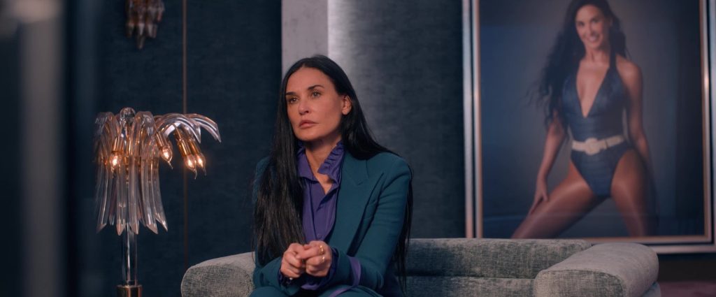 Tenemos a Demi Moore interpretando a Elisabeth Sparkle, una actriz de 50 años que ya ha dejado atrás sus años de fama en Hollywood y conduce un programa de televisión que ya está teniendo poca audiencia. Ya sabemos lo que sucede: la industria constantemente busca caras nuevas y más jóvenes, y la despiden. La carrera de Elisabeth está yendo en picada, y es en este contexto donde llega a sus manos la posibilidad de probar una droga que promete “Crear una versión más joven y más perfecta de sí misma”.